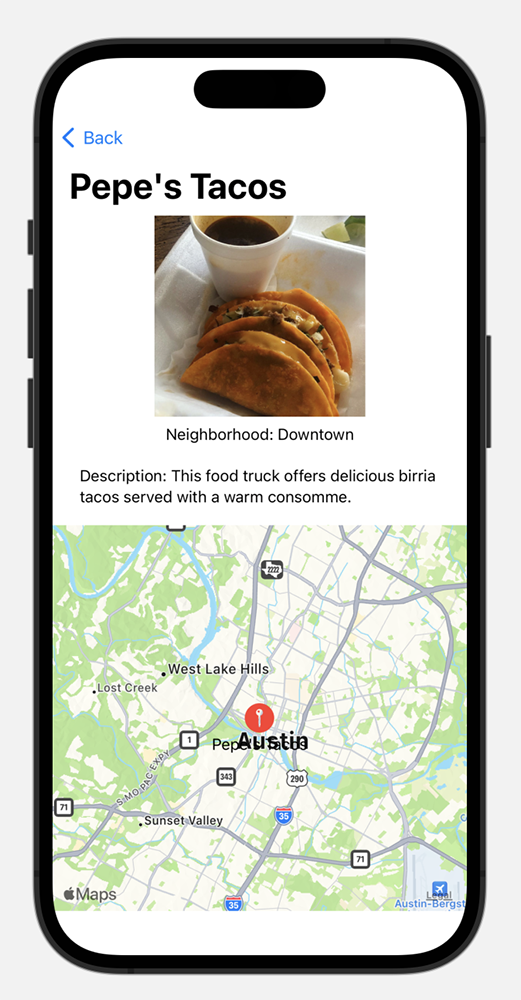 You should now see the proper map for each restaurant when you go to the DetailView.